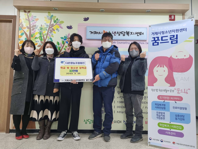 거제시청소년지원센터 꿈드림은 지난 22일, 생활이 어려운 학교 밖 청소년 1명에게 대학 입학 장학금을 전달했다.