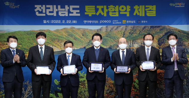 전라남도는 22일 ㈜포스코와 포스코에너지㈜의 신설 합작법인 엔이에이치㈜와 7천500억 원 규모 광양 LNG 터미널 구축사업 투자협약을 했다.