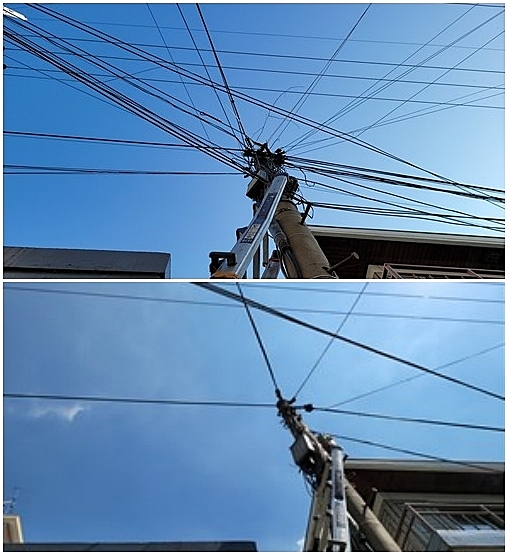 공중케이블 정비 전(상), 정비 후(하) 사진