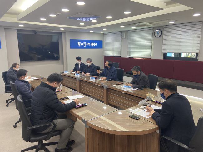광명시는 지난 18일 시청 영상회의실에서 광명상공회의소 전문건설협회 광명시흥테크노밸리 시공사인 호반건설 지평토건 홍용종합건설과 광명시 지역 건설 산업 발전방향을 논의하는 간담회를 가졌다.