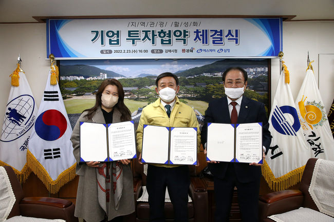 김해시와 (유)에스제이, ㈜삼정은 23일 김해시청에서 ‘김해 한림면 온천웰니스단지 조성을 위한 투자양해각서’를 체결하고 본격 개발에 나서기로 했다.