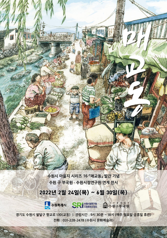 수원시가 수원시정연구원의 16번째 마을지 시리즈 `매교동` 발간을 기념해 24일부터 6월 30일까지 ‘수원 구 부국원’에서 전시회 ‘매교동’을 개최한다.
