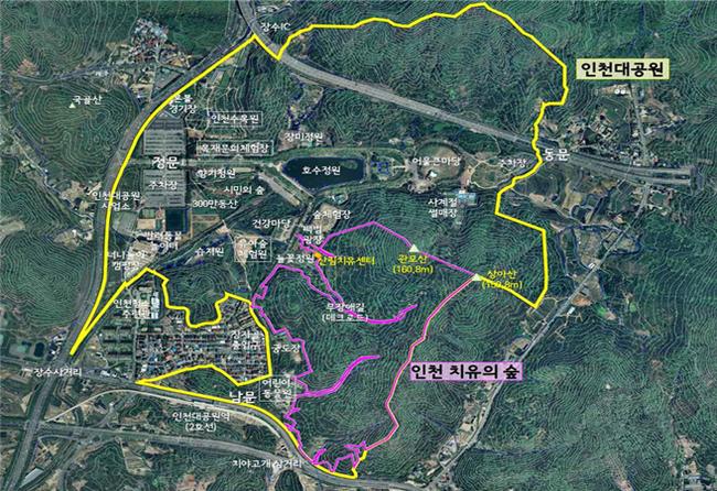 시는 만족도 높은 산림치유의 기회를 더 다양하고 확장된 프로그램으로 시민에게 제공하고자, 내년까지 총사업비 48여억 원을 들여 장수동 관모산 일대에 축구장 75개 크기(53ha)로 인천 치유의 숲을 확장 조성할 계획이다.
