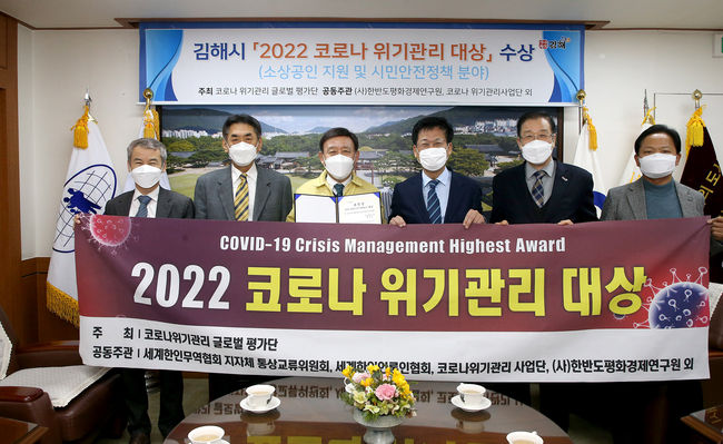 김해시가 코로나19 위기 속에서도 지역경제와 시민안전을 위한 선제적이고 적극적인 행정으로 코로나 위기관리 글로벌 평가단에서 주관한 ‘2022 코로나 위기관리 대상’ 공모에서 대상을 수상했다고 25일 밝혔다.