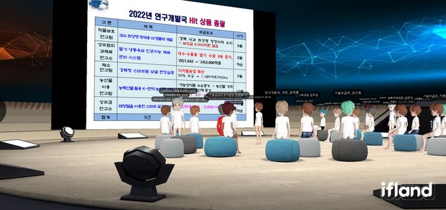 이날 신용습 농업기술원장은 연구국 및 기술국 직원들과 함께‘이프랜드’가상공간 회의장에 입장해 2022년 농업기술원 Hit상품 추진계획을 주제로 업무회의를 주재했다.