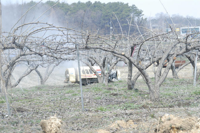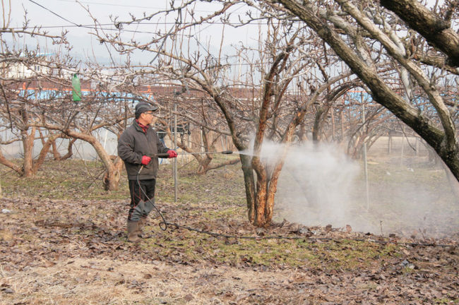 과수 월동병해충 방제 모습