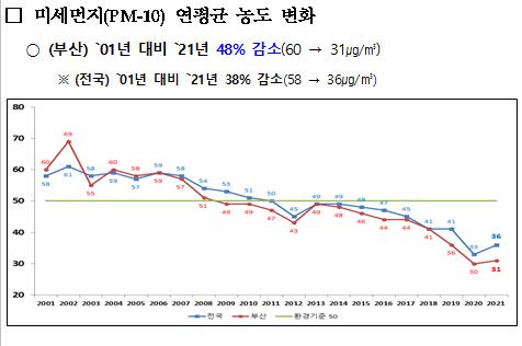 부산시는 맑은 공기, 푸른 바다, 건강한 녹색도시 부산을 만들기 위해 더욱 강화된 `2022년 미세먼지 저감대책`을 마련하여 시행한다고 밝혔다.