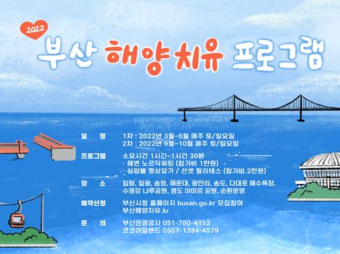 부산시는 오는 19일 수영강을 시작으로 부산의 대표적인 해양관광콘텐츠인 2022 해양치유 프로그램을 확대 운영한다고 밝혔다.