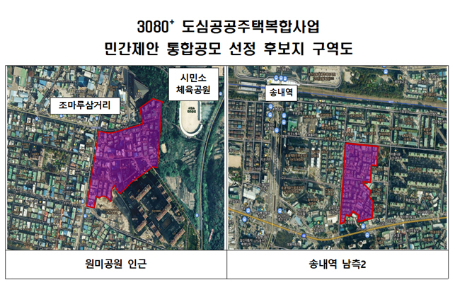 부천시는‘3080+ 대도시권 주택공급방안’과 관련해 지난 10월 28일 도심공공주택 복합사업 민간제안 통합공모 후보지로 2곳(원미공원 인근, 송내역 남측2)이 선정됨에 따라, 사업에 대한 주민(토지등소유자 등)들의 이해 증진을 위해 오는 3월 15일 주민설명회를 개최한다.