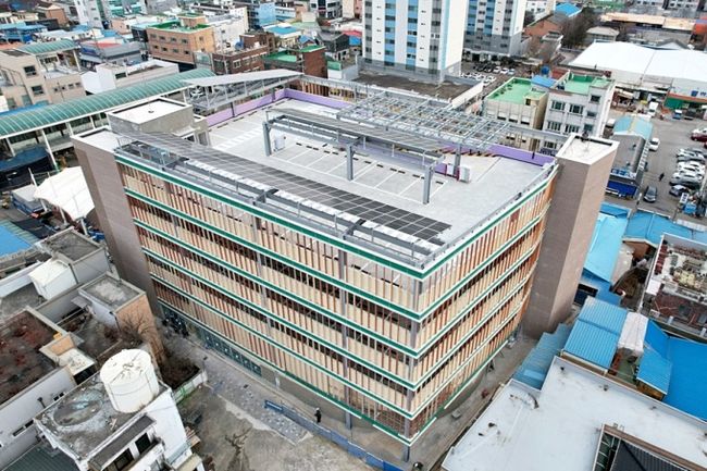 세종전통시장 주차타워는 당초 노후화된 71면의 기존 주차건물을 철거하고 국비 36억 원, 시비 65억 원 등 총사업비 101억 원을 투입해 연면적 5,260㎡, 지상 5층 규모로 재건축했다.