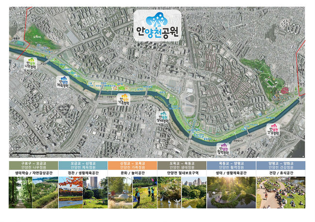 아울러, 철새 서식환경을 개선하는 생태습지와 조류관찰대 등이 조성돼 다양한 생태체험을 할 수 있는 ‘안양천 생태정원’과, 기존 파크 골프장, 우드볼장에 스마트팜 체험원, 수변 학교정원 등의 생태교육공간을 신설해 학교 연계형 프로그램 운영이 가능한 ‘안양천 건강정원’ 등 구간별로 주제와 이야기가 담긴 다채로운 안양천을 만나볼 수 있다.
