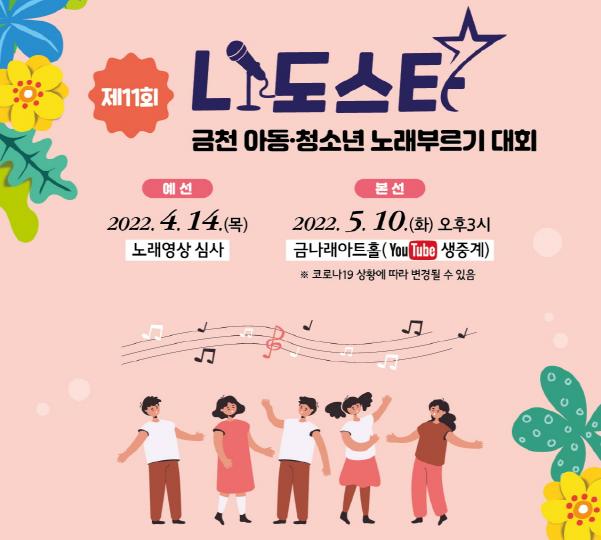금천구가 3월 14일(월)부터 4월 8일(금)까지 ‘제11회 나도스타 금천 아동·청소년 노래부르기 대회’ 참가자를 모집한다.