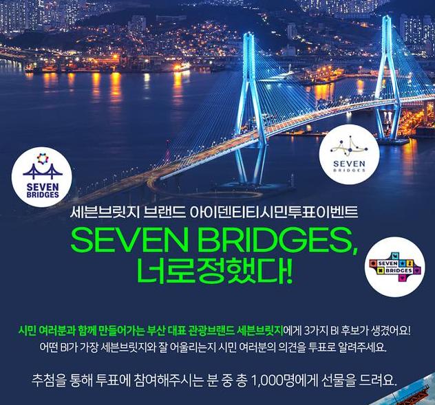 부산시와 부산관광공사는 국제관광도시 부산의 7개 해안교량 및 7개 해수욕장을 활용한 ‘세븐브릿지 랜드마크 프로젝트’ 사업의 브랜드디자인(BI) 선호도 조사를 오는 24일까지 실시한다고 밝혔다.