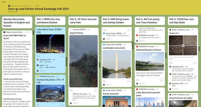 대상자로 선발되면 미국 페어팩스카운티 청소년과 일대일 친구를 맺고 내달 11일부터 5월 21일까지 총 8회 교류한다. 줌(ZOOM)을 이용해 실시간 교류를 하거나 패들렛(Padlet)으로 영상을 녹화해 공유하는 방식으로 다양한 주제에 대해 한국어와 영어로 의견을 나눈다.