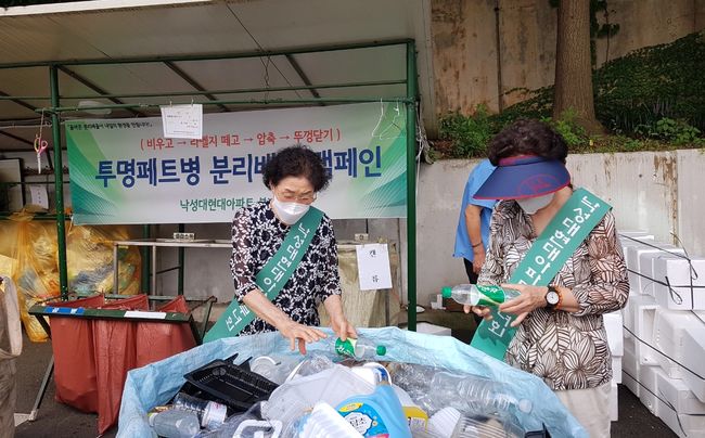 지난해 진행한 공동주택 공동체 활성화 사업(투명페트병 분리배출) 진행 모습