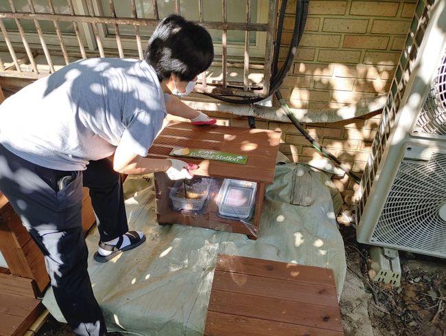 길고양이 급식소를 살펴보는 캣맘 사진 구는 이러한 문제를 해결하기 위해 사회적 고립 상태에 있는 1인 가구를 길고양이 급식소와 화장실 관리자로 지정, 한 번에 두 마리 토끼를 잡는다는 방침이다.
