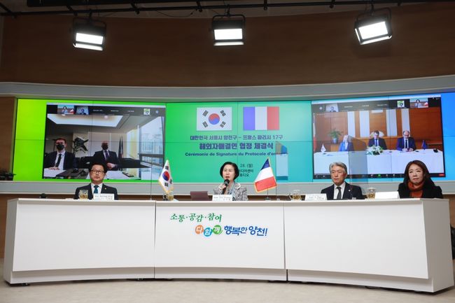 실시간 온라인으로 개최된 이번 협약식은 두 도시 간의 7시간 시차가 반영돼 한국시간 오후 5시, 프랑스 시간 오전 10시에 진행됐다.