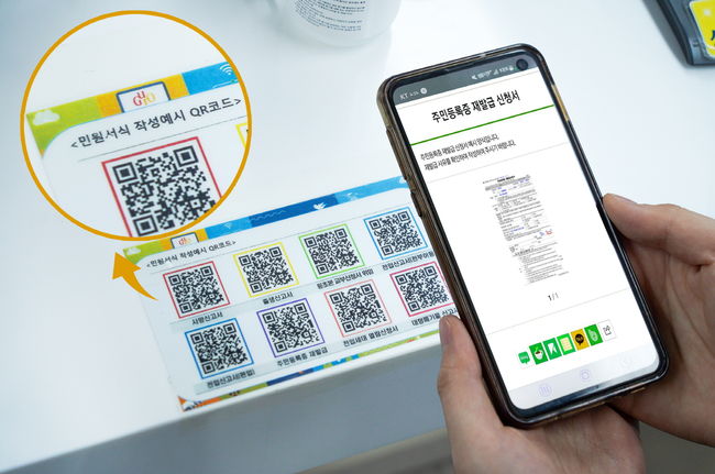부착된 QR코드를 스마트폰으로 스캔하면 민원서식 작성 예시 이미지로 연결돼 손쉽게 내용을 확인하며 서류를 작성할 수 있다.