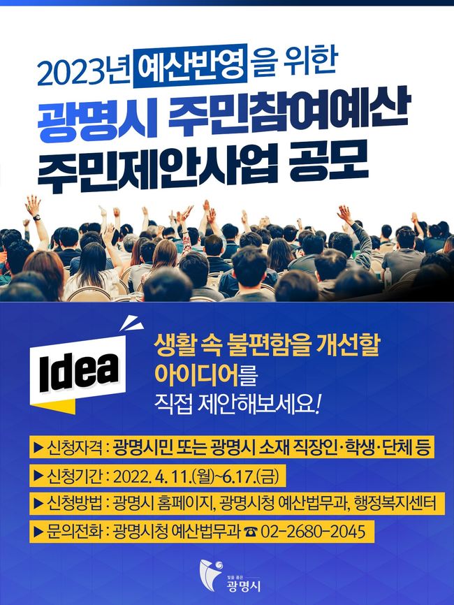 광명시, 2023년 예산 반영을 위한 주민참여예산 제안사업 공모