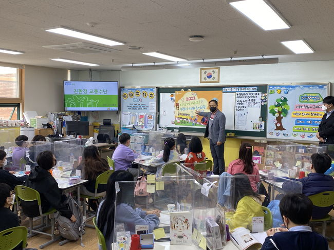 찾아가는 미래교통 교육은 어린이들이 변화하는 도시교통 환경을 긍정적으로 인식할 수 있도록 친환경 교통수단 등을 알려주는 프로그램이다. 21일부터 22일까지 이틀간 영통구 매화초등학교 3개 학급 학생 80여 명을 대상으로 진행했다.