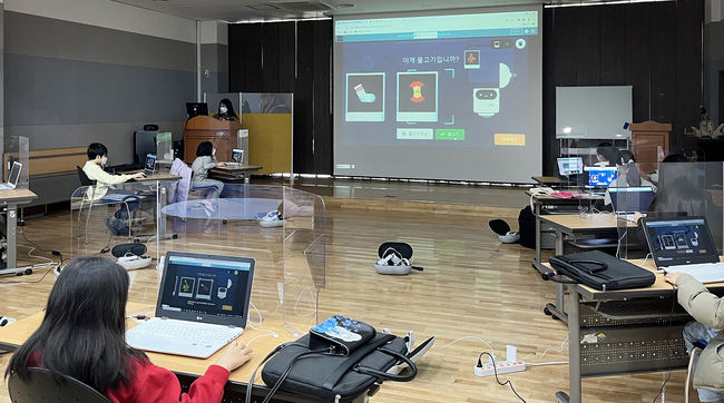 인공지능 인문학에 대한 이론 수업뿐만 아니라 VR을 활용한 미래과학 가상체험과 마이크로비트 코딩 체험 등 다양한 체험활동도 함께 진행된다.