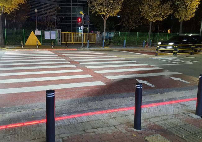 또한, 최근 스마트폰을 보며 걷는 일명 ‘스몸비족(스마트폰+좀비)’등 보행자의 주의력을 환기시켜 교통사고를 예방하고, 야간시간 차량 운전자의 시인성을 확보할 수 있다.