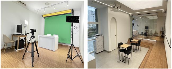 특히, 미디어실에는 실시간 온라인 쇼핑 방송인 라이브커머스, 기업 홍보 영상 및 제품 촬영이 가능하도록 캠코더, 카메라, 조명 등 각종 방송장비들이 구비되어 있다.