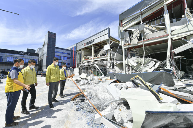 허승범 시장 권한대행은 폭발 피해를 입은 기업들이 조속히 정상 운영될 수 있도록 총력 대응할 것을 지시하며, 도로 등 손상된 기반시설의 긴급 복구와 피해지역 내 건물의 안전 점검 시행을 강조했다.