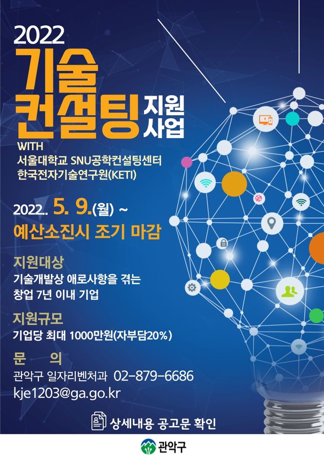 관악구가 기술 개발 상의 어려움을 겪고 있는 벤처·창업기업을 위해 ‘2022년 기술 컨설팅 지원 사업’을 진행한다고 밝혔다.
