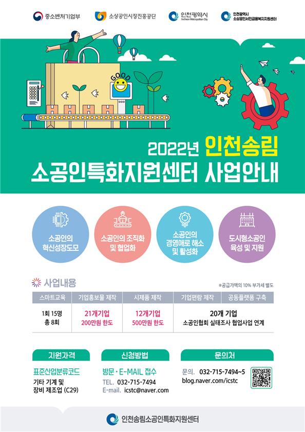인천송림 소공인특화지원센터는 동구 송림동과 송현동, 가좌동, 도화동의 기타 기계 및 장비 제조업(C29) 소공인을 대상으로 기업홍보물 및 시제품 제작 사업을 지원한다고 밝혔다.