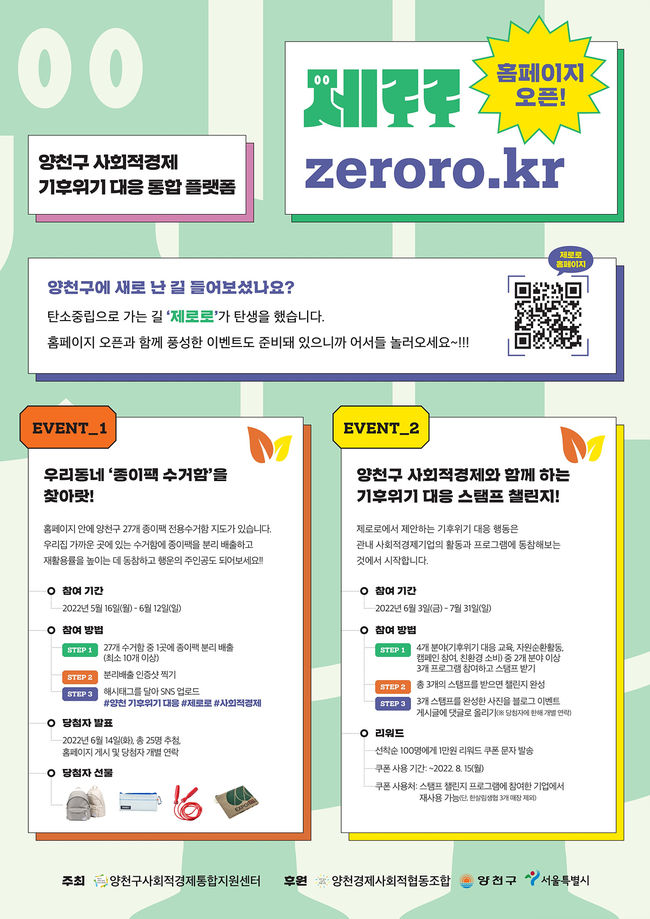 양천구 사회적경제 기후위기 대응 통합플랫폼 `제로로` 홍보 이미지