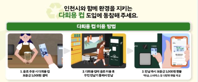 시청 일대와 인천문화예술회관 주변 카페를 대상으로 ICT(정보통신기술) 기반의 다회용컵 무인 회수기를 도입하는 2단계 시범사업을 10월 31일까지 확대하기로 한 것이다.