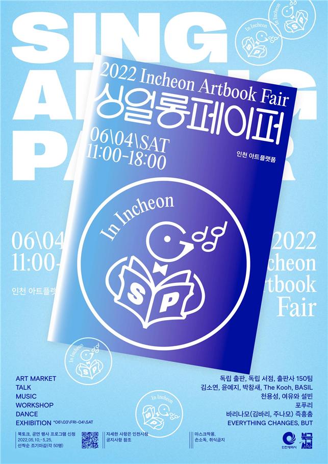 인천광역시는 오는 6월 4일(토) `2022 인천 아트북페어 – 싱얼롱페이퍼`가 인천 아트플랫폼에서 개최된다고 밝혔다.
