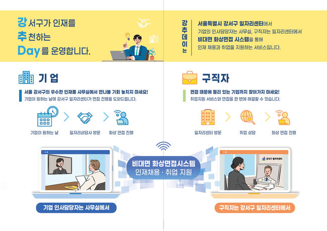 인재 채용을 원하는 기업의 인사담당자는 사무실에서, 일자리를 원하는 구직자는 강서구 일자리센터에서 편하게 면접을 볼 수 있다.