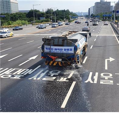 도시 열섬화 방지 위한 도로물청소 실시 모습