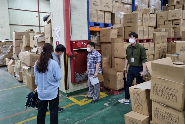 합동점검반이 물류센터 안전점검을 하고 있다.