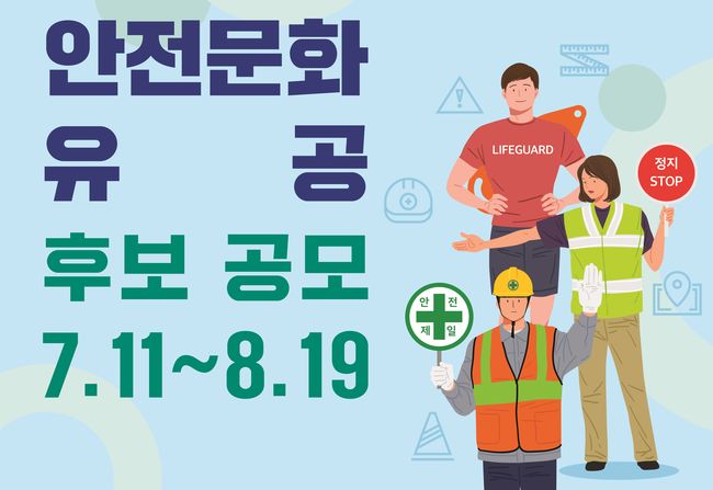 행정안전부는 안전문화 활동을 장려하고, 우수사례 발굴 · 확산을 위해 7월 11일부터 8월 19일까지 `2022 안전문화 유공` 공모를 진행한다.