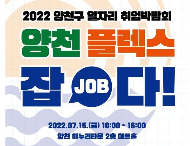 양천구는 오는 15일 10시 해누리타운 아트홀에서 대규모 취업박람회인 ‘양천 플렉스 잡(JOB)다!’를 개최한다고 밝혔다.