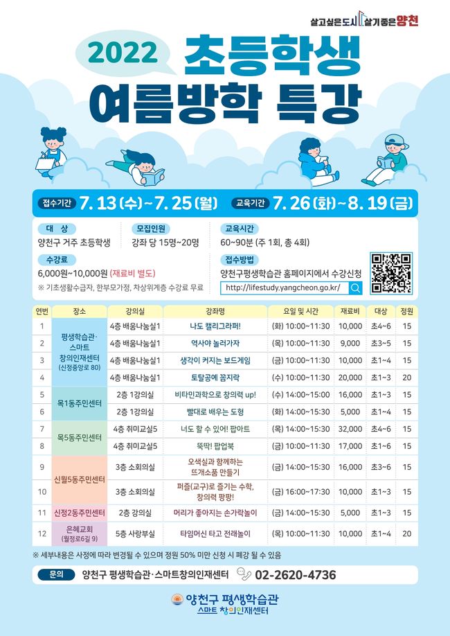 양천구, 2022 초등학생 여름방학 특강 홍보 포스터