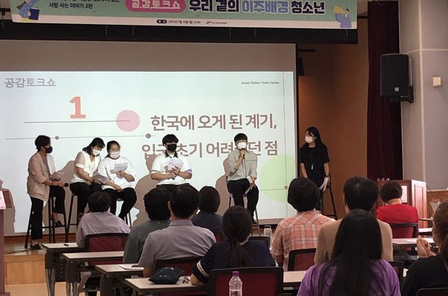 지난 18일 안산글로벌다문화센터 대강당에서 진행된 이번 특강은 외국인관련 기관 종사자, 내·외국인 주민 등 50여명이 참여한 가운데 안산에 거주하는 이주배경 청소년들이 패널로 직접 참여해 한국에 거주하며 느낀 고민과 어려움 등 희로애락을 토크쇼 형식으로 생생하게 전달하는 시간으로 진행됐다.