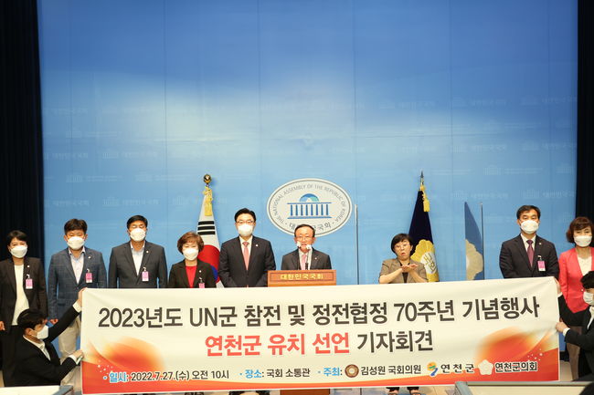 경기도 연천군은 내년, 2023년도 UN군 참전 및 정전협정 70주년이 되는 해를 맞이하여 `UN군 참전 및 정전협정 70주년 기념행사 연천군 유치 선언` 기자회견을 27일 서울 여의도 국회 소통관에서진행했다.