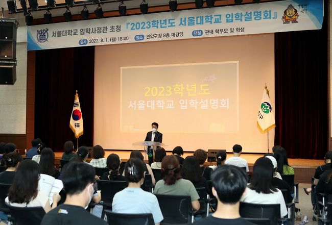 관악구가 서울대학교 입학사정관을 초청해 8월 1일 구청 8층 대강당에서 ‘2023학년도 서울대학교 입학설명회’를 개최했다고 밝혔다.
