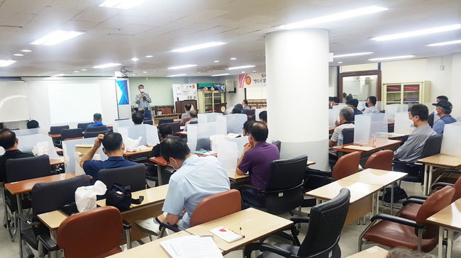 구로구가 중장년을 대상으로 스마트 운전기사 취업 연계사업과 경비원 취업 지원 프로그램을 운영한다. 사진은 경비원 취업지원 2기 교육 모습.