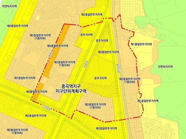 세부 개발 계획 수립 시 중곡역지구 용도지역지구결정(변경)도