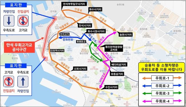 인천광역시는 `만석 우회고가교`의 본선구간 철거공사가 시작되는 8월 25일 오후 1시부터 고가교에 대한 차량 진‧출입 통제를 실시한다고 밝혔다.
