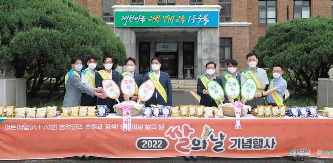 박해운 충북도 농정국장은 “충북쌀 경쟁력 강화를 위해 노후 벼 도정·저장시설 개선에도 힘써 명품쌀 생산기반을 구축하고 쌀 소비 확대 일환으로 쌀 가공식품 개발을 위해 다양한 노력을 기울이고 있다며 이번 쌀의 날이 쌀의 소중함을 되새기고 안정적인 소비 확대의 기회가 되기 바란다”고 말했다.