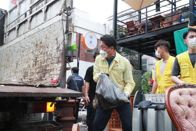 구는 집중호우 재난으로 인한 통합적인 지원체계를 구성하고 민·관 합동으로 모든 인력과 장비를 동원해 수해복구에 총력을 기울이고 있다.