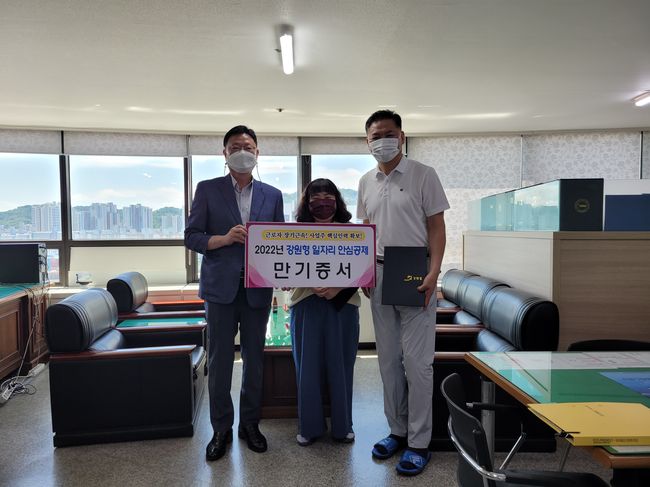 이번 만기 행사는 유공 기업인 조광중기 주식회사 사무실에서 진행되었으며, 유공 기업의 대표에 강원도지사 감사장을 수여하고 근로자에게는 만기 증서를 전달했다.