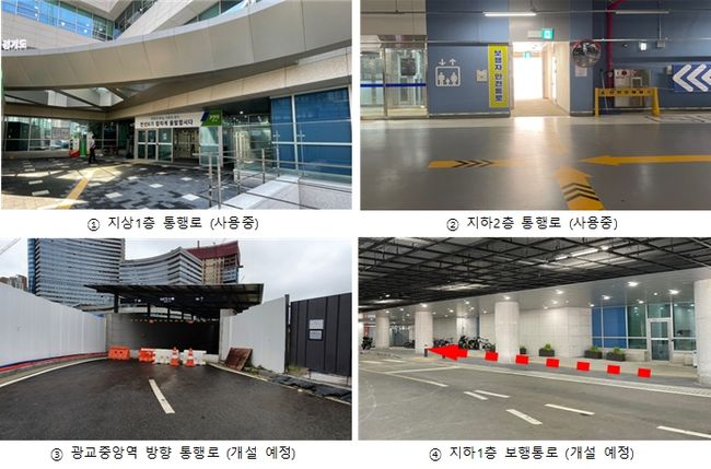 이에 따라 광교중앙역에서 도청사까지 700m, 13분 정도 걸렸던 이동 거리와 시간이 150m, 5분으로 줄어들게 됐다. 또, 4개 방면에 보행자 통로가 개설돼 어느 쪽에서도 접근이 쉽게 됐다.