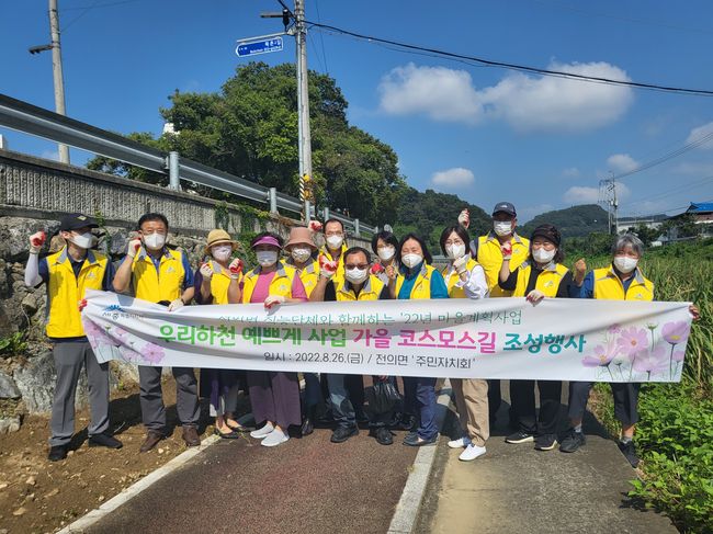 세종특별자치시 전의면 주민자치회가 26일 북암천변에 가을꽃 조성을 위해 코스모스 꽃씨 파종행사와 환경정화 봉사활동을 진행했다고 밝혔다.